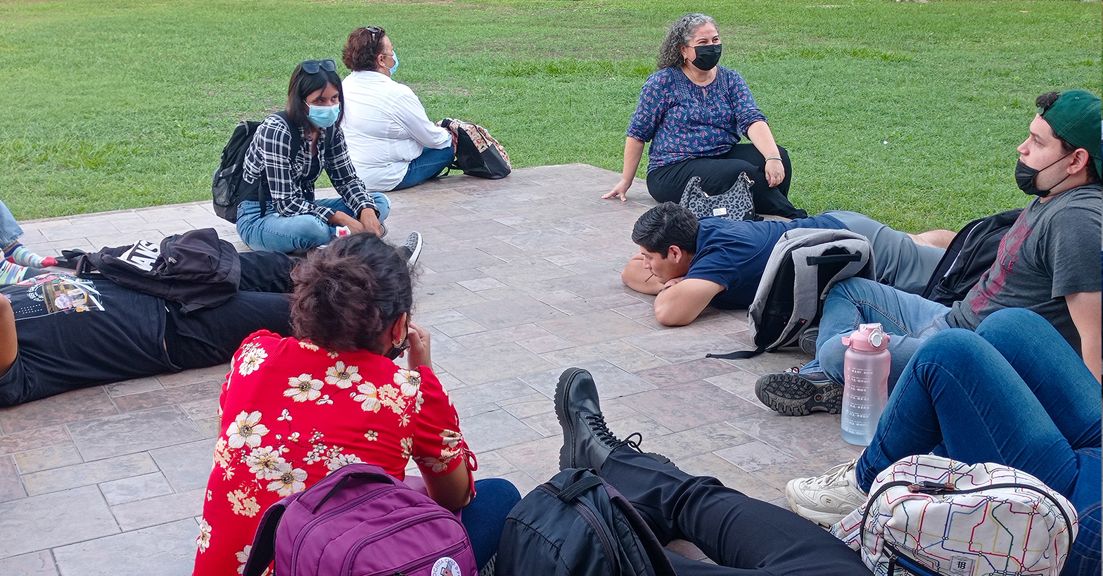 En este tenor la Mtra. Alejandra González Viveros, titular de la materia de Teoría de la Arquitectura llevó a sus alumnos de cuarto semestre del programa académico de Arquitectura a realizar un recorrido en los espacios abiertos de la facultad, esta actividad la denomino “a ojos cerrados” ya que el objetivo de la clase fue que los estudiantes lograran percibir los espacios, sonidos, ecos, temperatura, viento y texturas de los diferentes pisos, al concluir la actividad los alumnos FADU compartieron sus experiencias entre ellos y la docente.